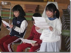 各学年の代表者がスピーチをしました。「来年は、さらに算数の勉強をがんばりたい。」「委員会では、5・6年生の言うことを聞いてがんばりたい。」「下級生に掃除の仕方をきちんと教えたい。」1年間でがんばったことだけでなく、次年度の目標も加えて発表していました。