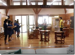 午前中は、学年ごとに会場設営や出し物のリハーサルをしました。プロの噺家やスタッフの方の指導のもの、着々と準備が進んでいきました。
