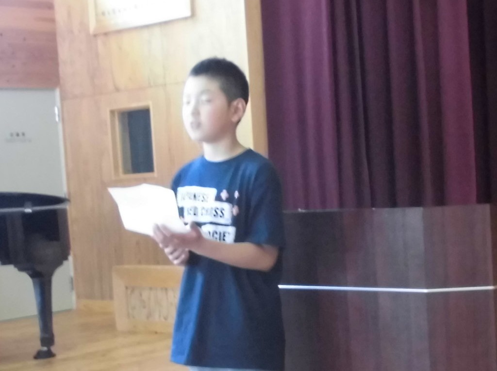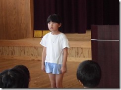 1学期にがんばったことや夏休みに向けての目標を全校児童に伝えました。
