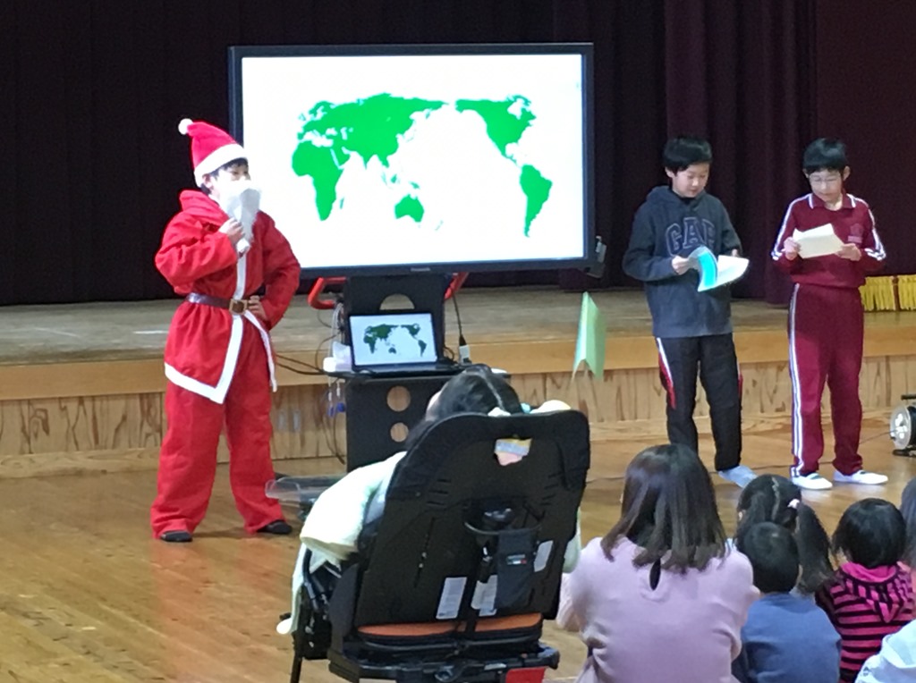 名倉保育園児全員を招待して、クリスマス会を行いました。