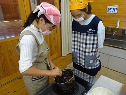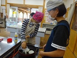 その一つとして、米を使った料理を考えました。スイーツ班とライスバーガー班に分かれ、この日まで練ってきた案を実際に形にしてみました。スイーツ班には和菓子屋さんを営んでいる方にお越しいただき、手伝っていただきました。