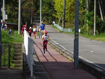 11月4日のマラソン大会に向けて、体育の時間には学年部ごとに練習をしています。今年からコースが変わります。コースを確認したあと、上り坂の練習をしたり、計測をしたりしています。