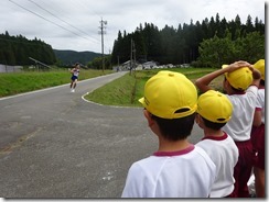 無事に応援場所まで行き、走る中学生の姿を見て、知っている子だと分かると、「〇〇くーん、がんばれえ!」と興奮気味に応援しました。知らない子に対しても、「がんばれえ!」と気持ちのよい声援を送っていました。