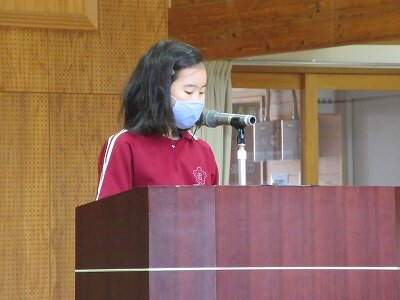 そして、各学年代表のスピーチも行いました。スピーチする子も聞く子も相手のことを考えていることが分かる立派な姿でした。