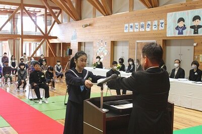 これは今までなら当たり前のことでした。でも、昨年度は感染症拡大の影響で卒業式の同日となり、担任からの修了証授与となったのです。