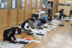 1月10日(水)に、書初め会を行いました。2学期から練習してきた成果を発揮しようと、限られた時間の中、集中して取り組む姿が見られました。作品は、1月15日(月)から1月26日(金)まで、各教室のワークスペース部分で展示します。期間中の平日であればいつでも結構ですので(8:20~16:10)、学校に足をお運びいただき、児童の力作をご覧ください。