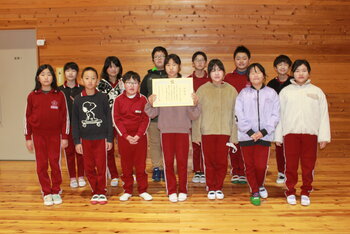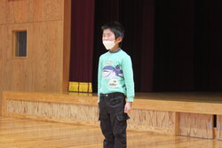 1月25日(木)の朝の全校集会で、設楽警察署から名倉小学校への感謝状の伝達表彰と、5・6年生の器楽合奏の発表がありました。