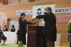 3月22日(金)に修了式を行いました。各学年の代表者が修了証を受け取り、1年間の学習を無事終えることができました。
