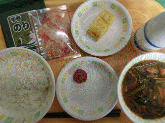 ちなみに、昨日は、韓国メニューでした。ビビンバとわかめスープでした。
