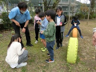 3・4年生は理科。運動場の植物を観察していました。新しく赴任された理科の先生と和やかに学んでいました。