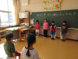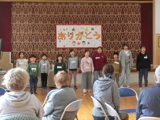 ふれあいタイム(ゲームで楽しみ)のあと、合唱の発表をしました。