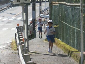 12月11日のマラソン大会に向けて、寒い朝でも元気いっぱい走っています。音楽をかけていますが、近隣の方から、「マラソンが始まったなと思います。」と冬の始まりを実感していただいているようです。