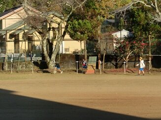 1~4年生で外遊びをしていました。今日の遊びは「かくれふえおに」だそうです。