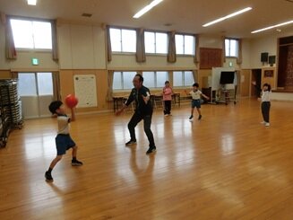 1・2年生は、フラッグフットボール。パスを味方に渡せるように、受ける側の子が動いたり、投げる側の子が、受ける側の子の動きに合わせて投げていました。