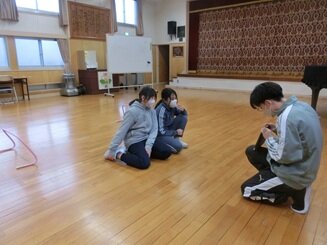 3・4年生は、マット運動。前転、後転の練習をしていました。映像にとって、自分の動きを確かめていました。