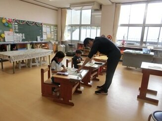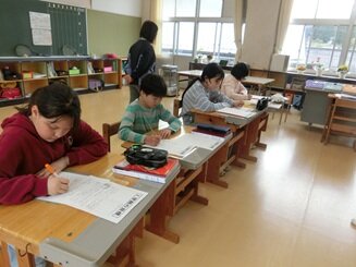 1・2年生は算数。2年生と1年生にわかれて、学習を進めています。基礎の力を身に付けていきます。