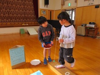1・2年生が生活科の学習で準備を進めてきた「おもちゃランド」に、来入児を招待しました。