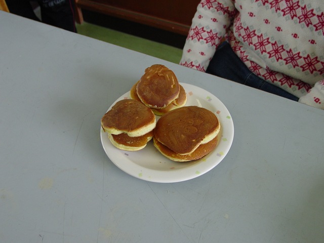 (職員A:どら焼きはボリュームたっぷり。おかげで給食は全部食べ切ることができなかった)
