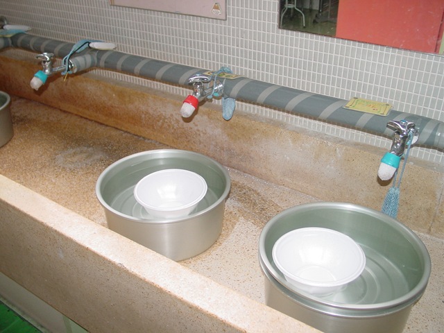 1日(水)の断水に備えてバケツをありったけ用意し、魔法瓶・アイスジャグも持ち出して、川水を汲み上げ水道水を汲み置いておきました。外出後の手洗い・うがい、用便後の水洗、心配は全くの杞憂に終わり、なにも混乱することなく1日は終了しました。「備えあれば憂いなし、よく準備できました」万万歳です。 (どうも本校の場合は断水しなかったような・・・。)