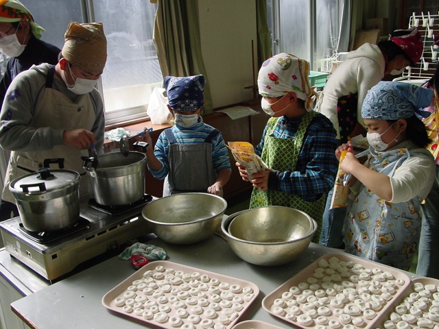 ゲームは清嶺小学校にまつわるクイズ。学校のエピソードや自分たちの学習内容を題材にして、子どもも大人も楽しめる問題が作られていたところに感心しました。おやつは学校農園での収穫物を材料にして(上手に保存できなかった材料については購入しました)ポップコーン・白玉だんごのきな粉まぶし・どら焼き・スイートポテトをふるまいました。これらは午前中に作り置きしたものです。感謝状・絵手紙は1か月前からこつこつと少しずつ製作を重ねて完成させました。