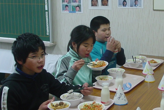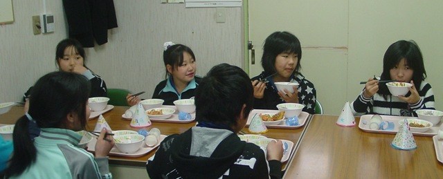 普段は検食のためにちょっぴり寂しそうに給食を食べている校長先生ですが、この日は違います。子どもたちと会話を交わしながら、終始にこやかに楽しく食事をとってみえました。