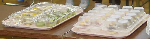 9日(金)は6年生に感謝する日です。久しぶりの全校会食を特別メニューで行いました。子どもたち一番のお楽しみはケーキバイキング。ケーキは7種類が用意されていて、目移りすることすること。全部食せば本当に幸せなのですが、ここから2種類を選択するのです。