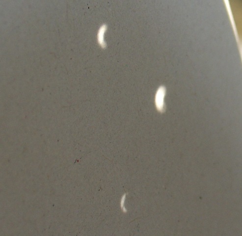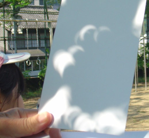 見事の一言。雲は出ていたもののその切れ目から顔をのぞかせる食が進んだ太陽を,しっかりと観測することができました。待ちに待った金環日食も予想以上の素晴らしい姿を見せてくれました。子どもたちも保護者の方々も職員も,世紀の天体ショー(!)を満喫することができました。