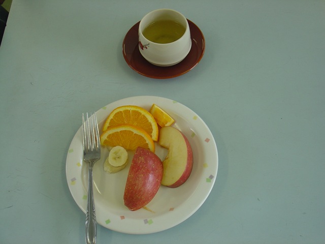 大型連休谷間の日,5月2日です。高学年がちょっとした調理実習をしました。そのおすそ分けにあずかって,お茶と果物をいただきました。日頃めったに使うことがない(らしい)包丁で果物を切り分け,お茶の葉を急須で丁寧にいれたものを出してくれました。八十八夜を迎えた直後ですので「新茶をおいしくいただきましょう」はできませんが,普段とは一味違うお茶を味わうことができました。