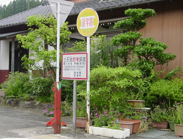 通学路を巡ってみて感じるのは国道257号線と県道・町道との交通量の大きな違いです。さほど途切れることのない車の流れを観察できる道と,子どもが跳びはねて遊んでいてもさして支障のない道の違いといえば当たりでしょうか。「安全に気をつけて登下校するのは国道を通るとき。脇道に入ってしまえば気を使わなくても大丈夫」こんな意識はないはずですがもしあるとすれば怖いことです。もう一つ気づくのは人通りの少なさです。午後三時前後の時間帯,国道も県・町道もほとんど歩行者はいません。たまに畑や田圃仕事の人や釣り人を見かけるくらいです。へき地・中山間地においては当たり前の風景といえばそれまでのことですが,寂しいことには間違いありません。「助けて」と叫んだときに何人の方々が気付いてくれることか…。
