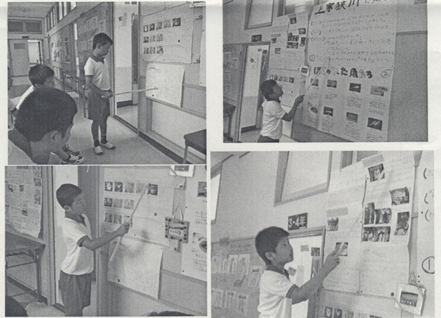 9月7日(金),3・4年生が夏休み中の自由研究・作品発表会をしました。一人一人のタイトルは「伝統,ひっかけ漁」 「上寒狭川,ぼくのつった魚たち」
