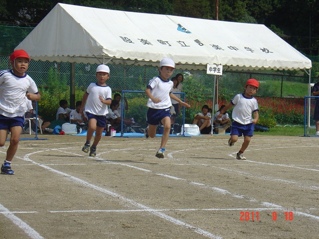 かつて清嶺地区には清崎小・田峯小・田峯小裏谷分校・三都橋小・豊邦小・清嶺中学校がありました。毎年9月に各校は清嶺中学校の運動場に集まり,保育園も含めて地区の合同運動会を行っていました。その後,裏谷分校・三都橋小・豊邦小・清嶺中が閉校となりました。それに伴って運営と会場は清嶺小と田峯小が隔年で担うこととし,地区合同の形態はそのまま残し,現在に至っています。清嶺地区の赤ちゃんからお年寄りまで,たくさんの方々が運動会にかけつけてくださり,運動場のトラックの周囲は人で埋まります。