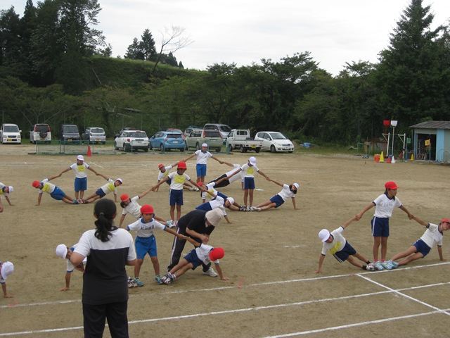 運動会練習に熱が入ってきました。本番は22日ですから残すところ概ね一週間。「間に合うかな」ちょっぴり不安になり,焦っているかもしれません…が,これは先生たちだけでしょうか。今日は厳しい残暑の中での練習となりましたが,子どもたちは大変元気に動き回ることができていました。13日は予行練習です。6日の集合学習以後,運動会に向けて分習に取り組んできました。明日,子どもたちは田峯小にでかけて全習です。田峯小の子たちと動きを,演技を,息を合わせることに挑戦します。