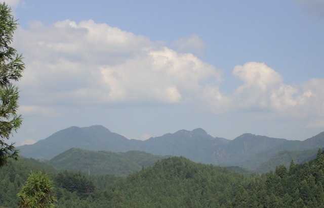 唐突ですが設楽町の紹介をします。田峯小へ向かう道中,良く眺望がきくところがあります。設楽町といいますか奥三河といいますか,その山並みを眺めることができます。写真に映っているのは鹿島山(912m)・大鈴山(1011m)・平山明神山(950m)・岩古谷山(799m)です。