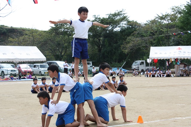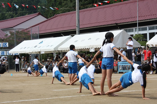22日。秋晴れの下,暑くもなく寒くもないたいへん良いコンディションで本年度の運動会を実施することができました。事前の練習の成果を存分に発揮することができた,実りの多い運動会になりました。ここ数年ずっと勝ち続けていた白組は,今年は赤組に花を譲りました。「予行練習で勝った組は本番で負ける」という子どもたちの間のジンクスも,今年は通用しませんでした。