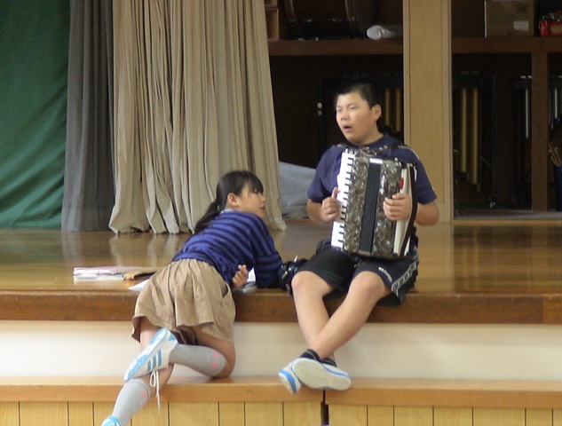 低学年・中学年・高学年の3クラスで,それぞれ『合唱奏』『劇』を演じます。全校合唱も披露します。今年は清崎老人クラブの発表も予定されています。たくさんの地域の方々にお越しいただき,自信を持って演技を披露することができる子どもたちであるように,さあやりますよ!
