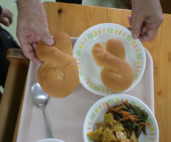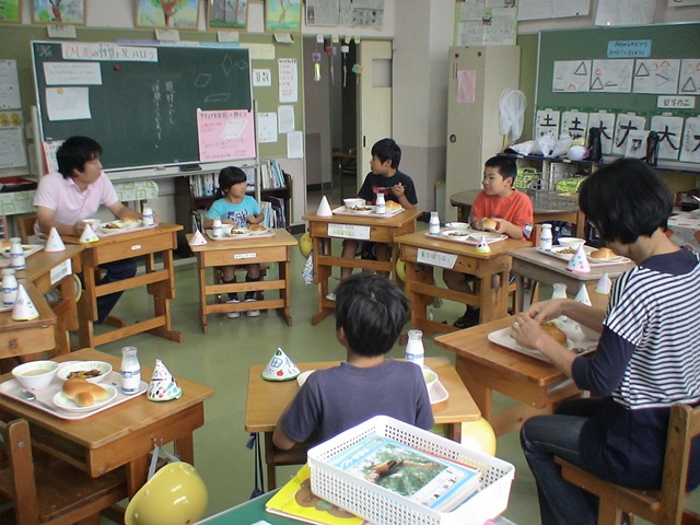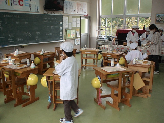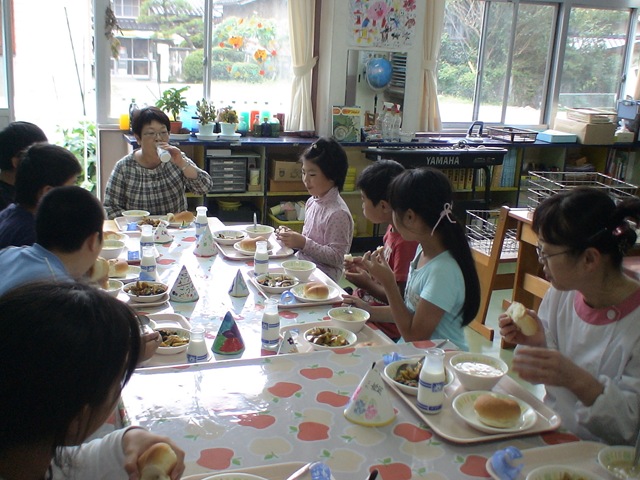 17日(水),なかよし班会食をしました。なかよし班は全校児童を縦割りにした三つの班です。普段は学級で会食をしています。今日は先生方もそれぞれの班に入って全校で和気あいあいと会食を楽しみました。1年生から6年生までが一緒になって準備をし,対話をし,片付けをする。協力・協働の場は気持ちの良いものです。「低学年と高学年ではこんなに違ってたのか!」主食のパンの大きさを比べて,上級生がびっくりしていました。(あなたも低学年の時はこの大きさだったのですよ。)先日収穫したサツマイモが大学芋に姿を変えて登場し,おいしくいただきました。パンも大学芋も何度も何度も噛んでいると・・・口の中でおいしさがほわ~と広がりました。