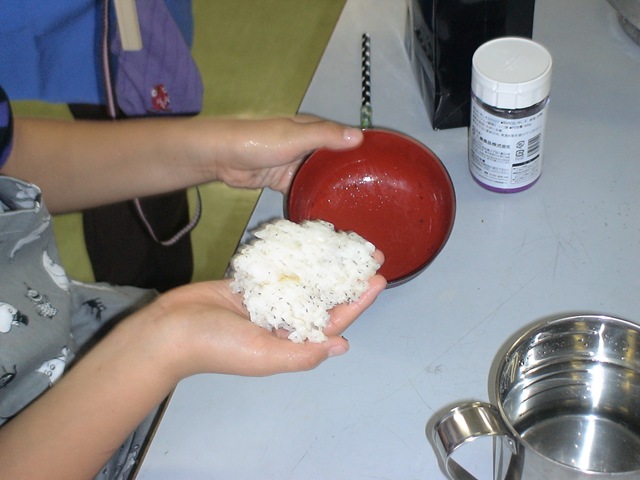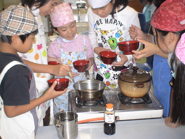 給食後,5・6年生は家庭科で調理実習をしました。ご飯を炊いておにぎりを握り,出汁の役割を確かめる実験をしました。ご飯は鍋で炊きました(ミネヒビキです!)。正直なつぶやきを一つ。私は歯の老化が進んでいるのだなあ,少々こたえる。味噌汁の出汁はカツオ・コンブ・ニボシ・出汁なし(醤油だけ)と揃えられていて,その違いを比較することをしました。正直な感想を一つ。出汁は良い,日本人に生まれてよかった。