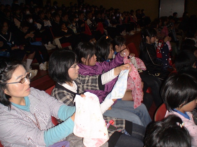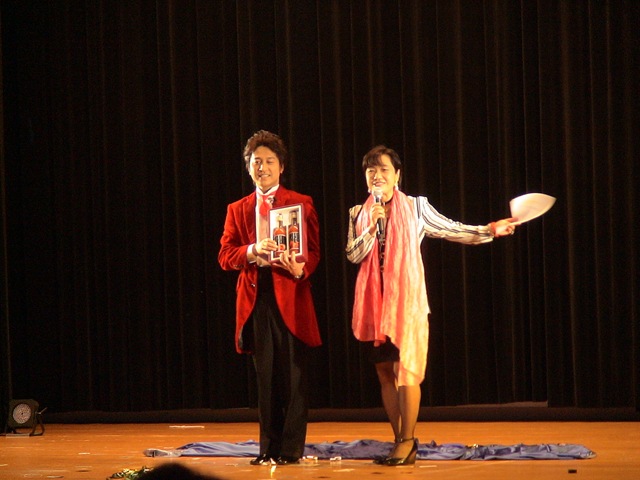 これはハンカチとペットボトルキャップを使ったマジック・・・輪ゴムと5円玉を使ったマジック・・・プレゼントを渡した児童会長・・・Masakiと司会者の写真です。楽しいステージでした。チケットを手に入れる努力をしてみようかなあ・・・。