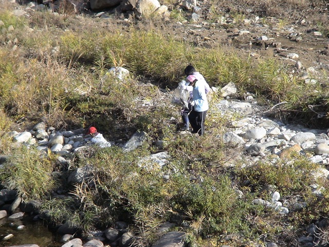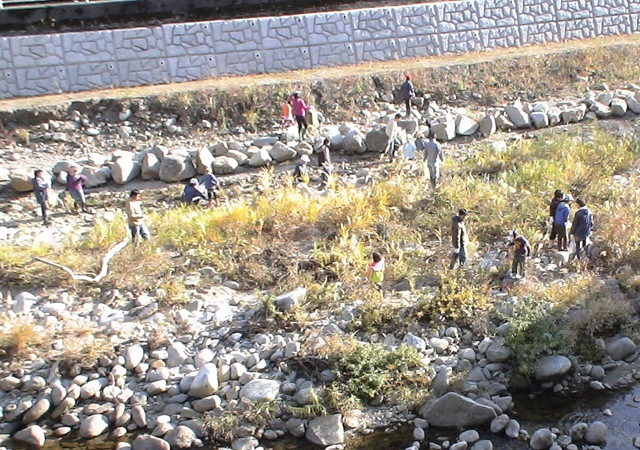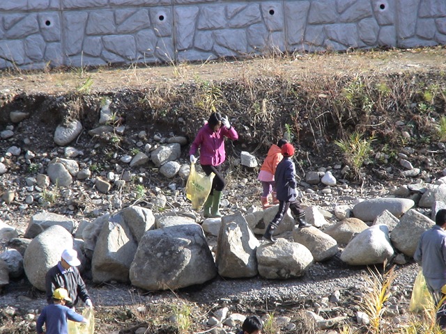 きれいな水が流れている(水質調査ではいつも「きれいな川」の評価となっています)川ですので,ゴミは少ないだろうと思い込みがちですが,拾ってみると結構あることに驚かされました。この様子では子どもたちの水質調査では測定できない化学的な汚れ,これはずいぶん進んでいるかもしれません。清嶺地区のような上流域では川の流れが速いですから,汚水が川に流れ込んでも汚濁物が長い時間とどまることは少ないでしょう。そう考えると下流域は大変です。