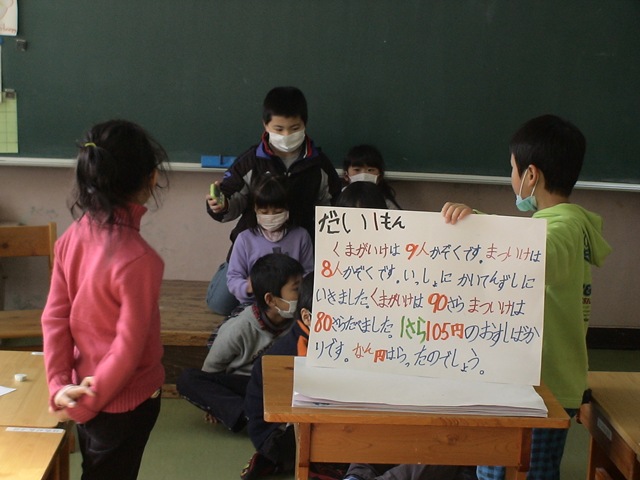 インフルエンザが流行しそうな兆しがありますので,予防対策の一つとしてマスクの着用を奨励しているのです。出席停止中の1人は順調に回復していて,来週からは登校できるはずです。ありがとうの会には全校児童・職員が参加できる,これも大事なことです。見方を変えればこれも「ありがとうの会」のための準備かもしれません。参加してくださる地域の方々に「病気にならずに,2月4日はお元気な姿でお越しください」と呼びかけていきましょう。