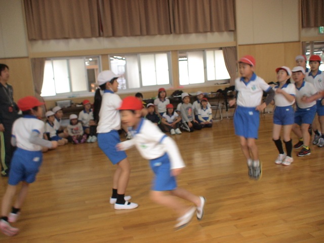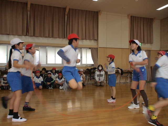 それぞれがたてた目標達成を目指してほぼ1時間30分,気持ちの良い緊張感が漂う良い時間を過ごすことができました。「認定種目」では基準回数を越すことができると『認定証』をもらうことができます。「対抗長縄跳び」は3班対抗で最優秀班を決めます。たくさんの子たちが認定証をもらえることになりました。長縄跳びは「ひまわり班」が最優秀になりました。