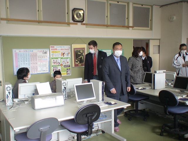 14日(木),America,state of Illinois からのお客様をお迎えしました。小学校長・中学校長・特殊教育担当理事の3名です。設楽町教育委員会の方々を含めて総勢9名が来校されました。
