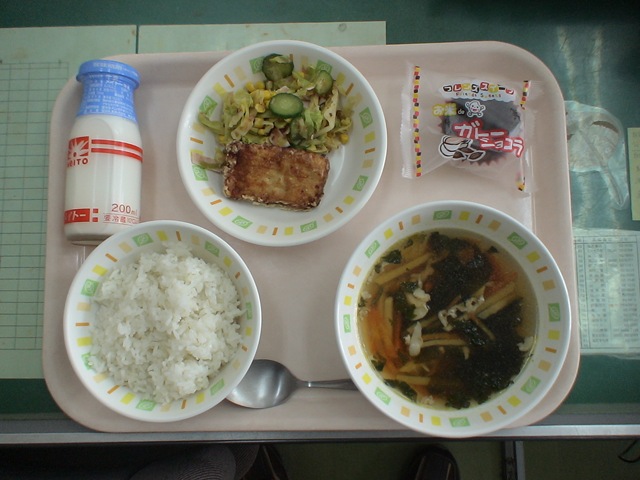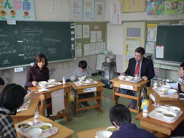 全校児童・生徒900名程の規模の学校から来られた先生方だそうです。本校のような極小規模,複式学級,この条件下の子どもたちの学校生活はどのように感じられたでしょうか。そうそう,今日はインフルエンザの関係で25人中13人しか学校に来ていませんでした。子どもたちは授業を見ていただくと共に,給食を一緒に摂りました。今日の給食は6年生のリクエスト給食第3段!