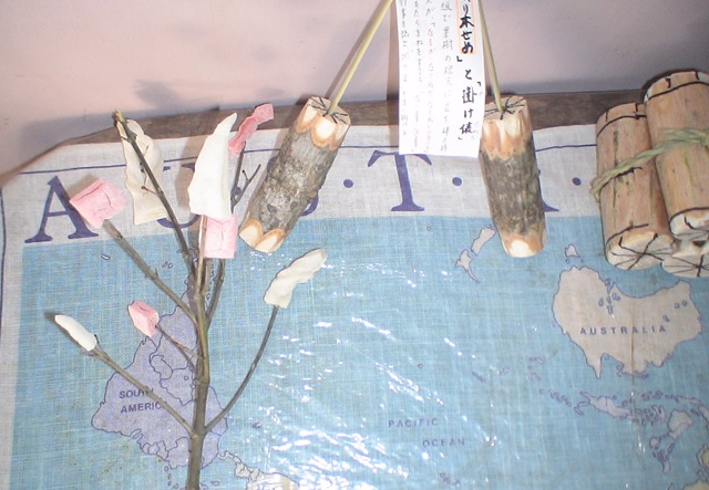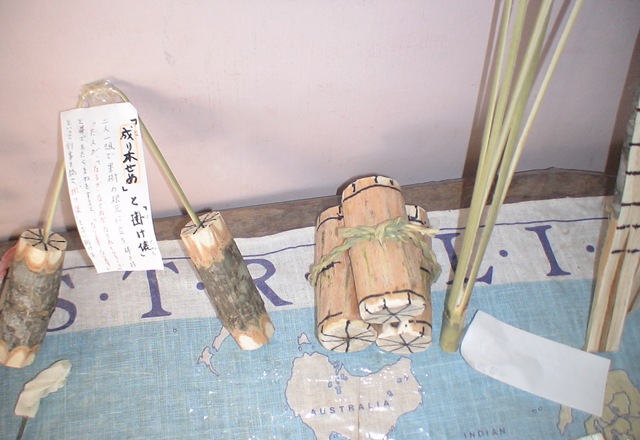 わかりにくい写真で申し訳ありません。夏目さんが自宅で実際に飾られた(祀られたが正確でしょうか)旧正月飾りです。旧正月のお祝いをすること自体が減ってきている現在では,このようなお飾りの存在は忘れられてしまうかもしれません。お飾りのそれぞれには五穀豊穣や家族繁栄への想いが表現されています。それは間近に迫った春への希望の象徴ともいえそうです。子どもたちはこの正月飾りと夏目さんの語りから,どのような春を感じてくれたでしょうか。
