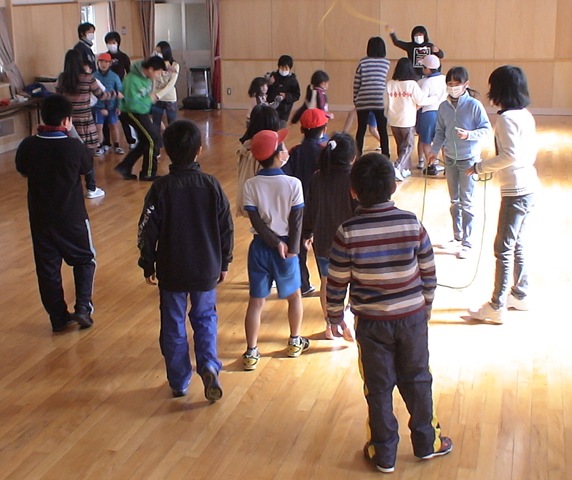 今週水曜日に縄跳び大会を行います。個人種目として「認定種目競技」があり、集団種目として「なかよし班対抗8の字跳び」があります。認定種目は前跳び・後跳び・あや跳び・交差跳び・二重跳びです。放課や放課後には学校のあちこちで、『ひゅんひゅん・ぱしぱし』縄の音が響いています。なかよし班は全校の縦割り班ですから、1年生から6年生が一緒になって長縄を跳んでいきます。年齢差をよく考慮して跳ぶようにしないと、思うように連続して跳んでいくことが出来ません。高学年の子たちの知恵と工夫の発揮のしどころです。