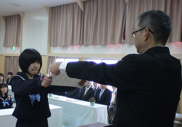 本校第16回の卒業式を本日行いました。本年度の卒業生は5人(男1人,女4人)。明るくさわやかに巣立っていきました。