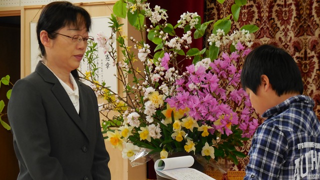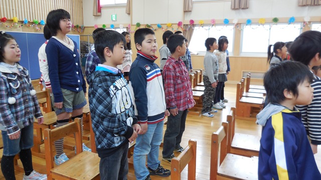 「歌や学芸会,運動会,毎日の授業など,みんなのがんばる姿を見て,先生もがんばれました。こつこつがんばると,身になります。これからもこつこつがんばってください。」