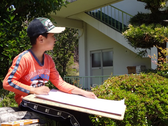 大型連休明けの5月7日(火),お天気にも恵まれ,校地内で写生会を行いました。