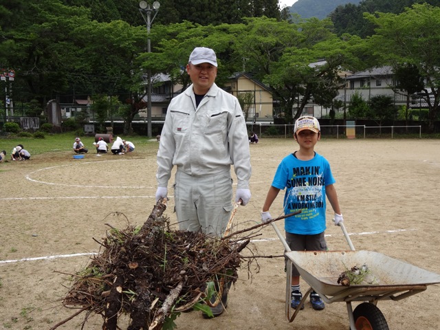 丸山PTA会長さんは 晴れ男?! 草取りも草捨ても がんばりました