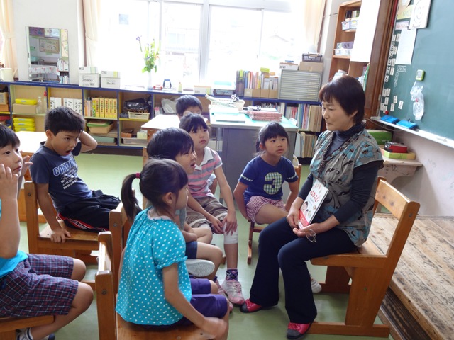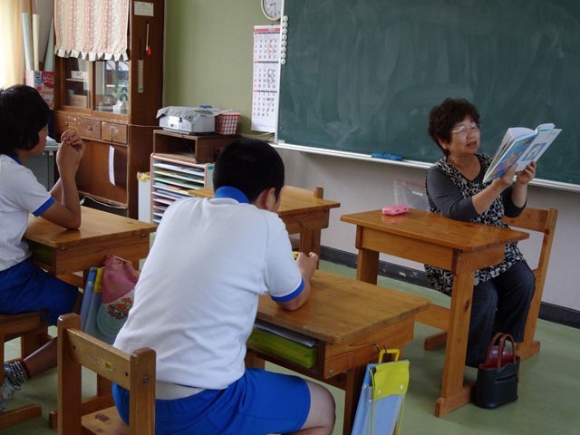 3・4年生には,後藤恵子さんが,『あかてぬぐいのおくさんと7人のなかま』という本を読んでくださいました。子どもたちは,恵子さんに「仲間と協力することが大切だということが分かりました。」「みんなで力を合わせるとうまくいくんだと思いました。」といった感想を伝えていました。読み聞かせ会では,生きることに通じるいろいろなことを学ぶことができます。